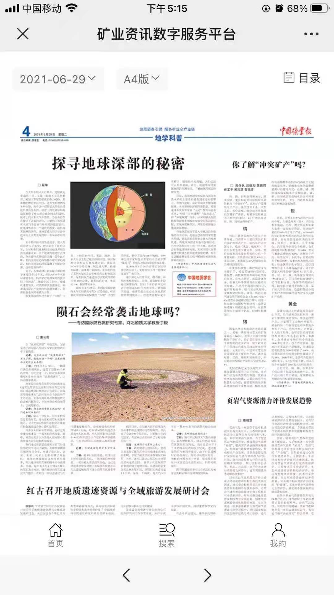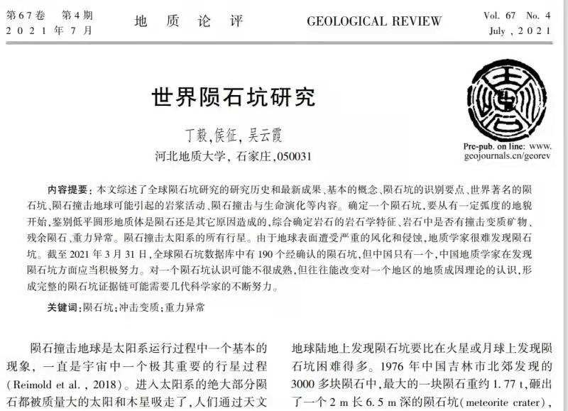 近日,BB贝博特聘教授丁毅在最新一期地学类期刊《地质论评》以“世界陨石坑研究”发表综述文章,并接受中国矿业报记者科普知识专访,相关采访内容发表在6月29日《中国矿业报》地学科普栏目。