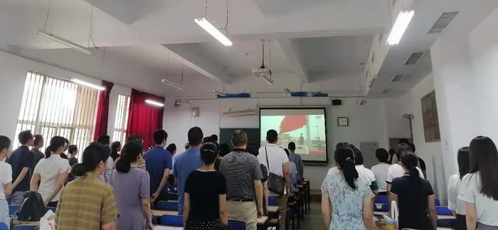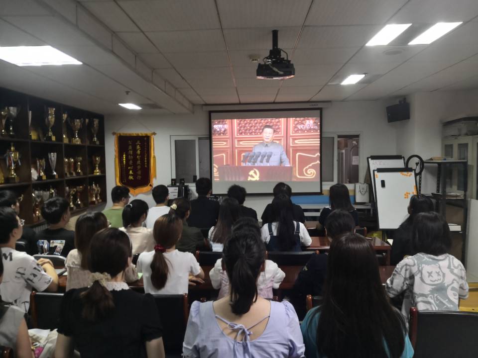 校党委理论学习中心组在主楼三楼会议室设立主会场,各单位设立分会场,全体师生满怀激动喜悦的心情,共同收看庆祝大会实况直播,认真聆听习近平总书记重要讲话,热烈庆祝党的百年华诞。