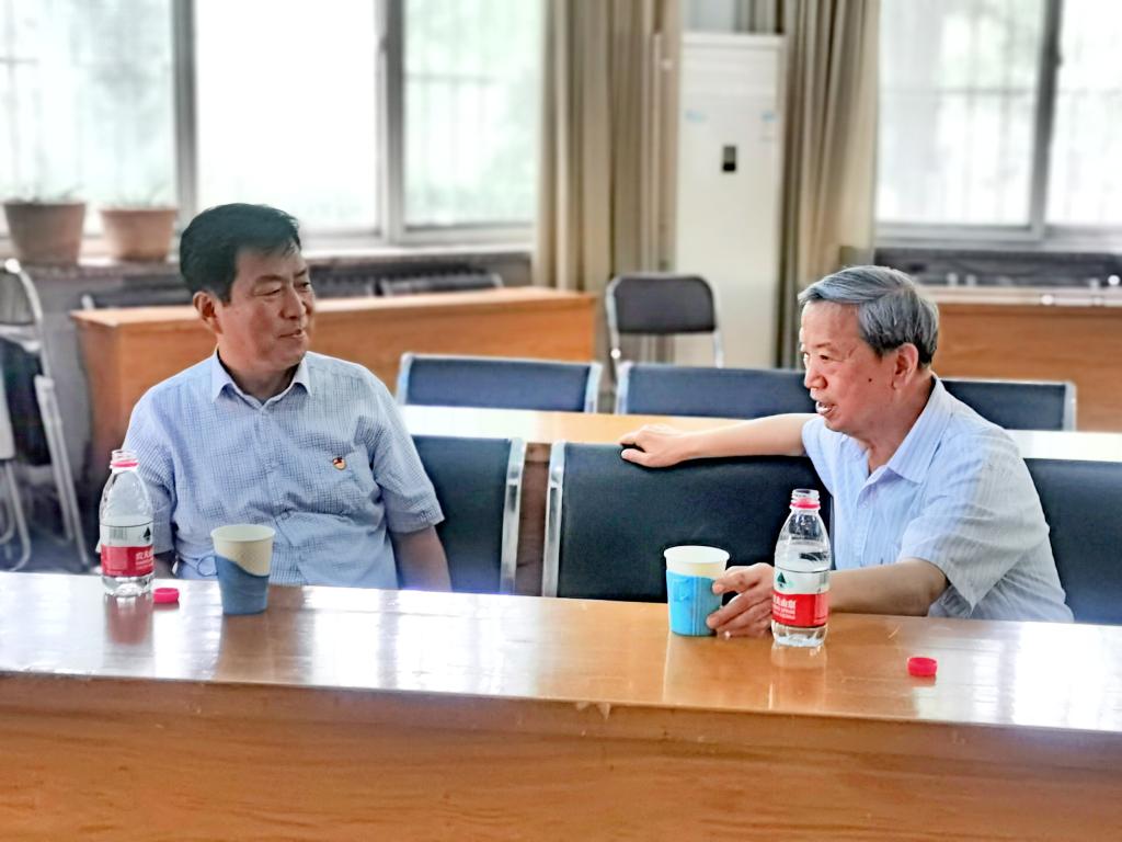 校党委书记邢承国与老党员、李四光地质科学奖获得者牛树银教授亲切交谈,细致关心牛树银教授退休后的生活点滴,了解牛树银教授科研工作近况。牛树银教授表示:“感谢党和学校的关怀与爱护,虽然自己已经退休了,但是作为一名老党员仍然保持着一颗对党、对国家地质事业奋斗终身的赤诚之心,我还要继续发挥余热,为国家地质事业,为学校发展贡献力量。”