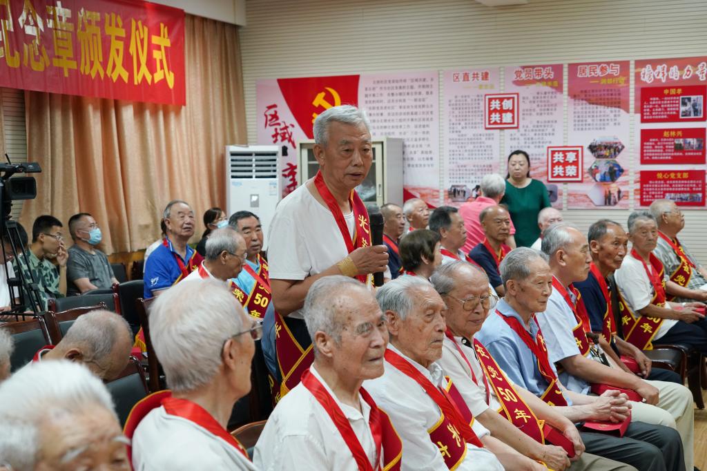 已有91岁高龄、64年党龄的老党员、离休干部张增琪表示,“今天怀着激动的心情参加学校为‘光荣在党50年’老党员颁发纪念章仪式,深刻感受到了以习近平同志为核心的党中央对老党员的关心厚爱,我虽已到耄耋之年,但时刻铭记着入党誓词,心中满怀着作为一名共产党员的荣誉感、归属感和使命感,我们老党员还要继续发挥余热,不忘初心、牢记使命,在百年新征程中坚定不移听党话、跟党走,在年轻党员和师生中起到引领和帮扶作用。”