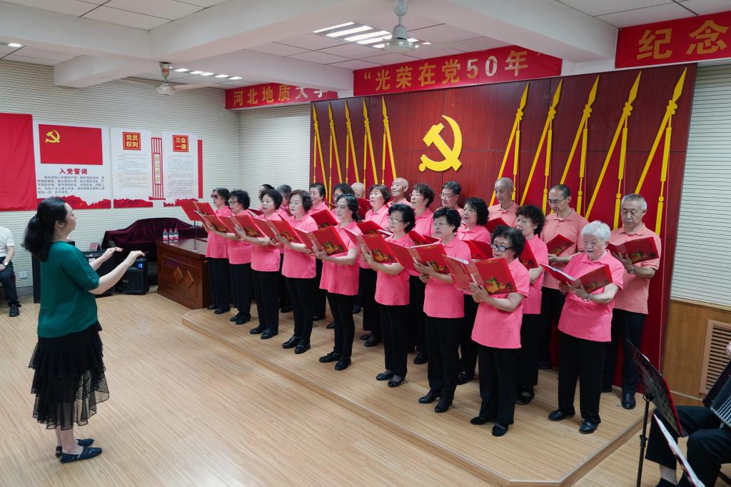 今年83岁高龄、55年党龄的老院长曹成饱含深情地回忆了1965年从北京地质学院毕业前夕,光荣加入中国共产党的情景,回顾了老一辈地质人在党旗的指引下,在祖国的大地上跋山涉水,战严寒斗酷暑,不畏艰险、勇于奋斗的地质人精神和光荣传统。他说:“我们党即将迎来中华民族历史上一个光辉灿烂的日子,2021年7月1日中国共产党成立100周年,这一天的到来意味着中国人民正站在新的起点上,启航新征程,向中华民族伟大复兴的中国梦乘风破浪、一往无前。我们这一代人怀着尽快建设强大祖国的决心和赤诚之心投入到祖国的地质事业中,此时此刻,曾经工作中的日日夜夜难以忘怀,党组织对我们无微不至的关怀,铭记在心,终生难忘。我要永远以党员的标准要求自己,在党的事业上做一颗永不松动的螺丝钉。希望在有生之年,看到祖国的繁荣富强,看到学校的蓬勃发展。红心永向党,不忘初心、牢记使命,永远跟党走。”