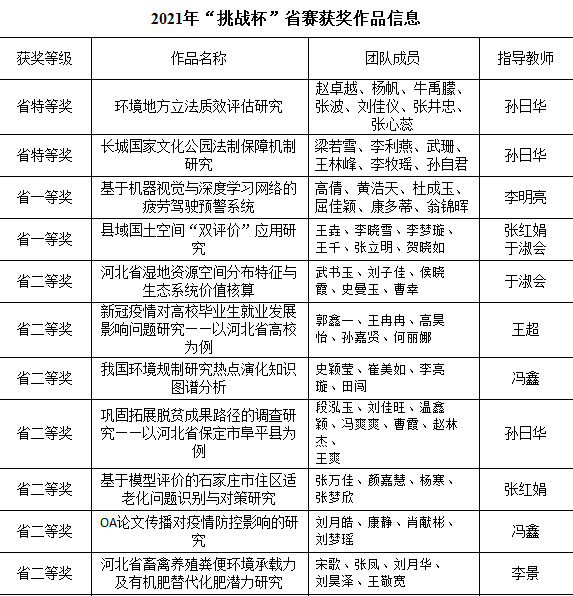 5月25日—26日,2021年“挑战杯”河北省大学生课外学术科技作品竞赛终审决赛在燕山大学举办。本届“挑战杯”竞赛共有来自全省81所高校的1642件作品进入省赛环节,其中共计339件作品进入终审决赛。经过激烈角逐,BB贝博共有23项作品获奖,其中省特等奖2项,省一、二、三等奖21项。同时,特等奖作品《长城国家文化公园法制保障机制研究》入围 “挑战杯”全国大学生课外学术科技作品竞赛。