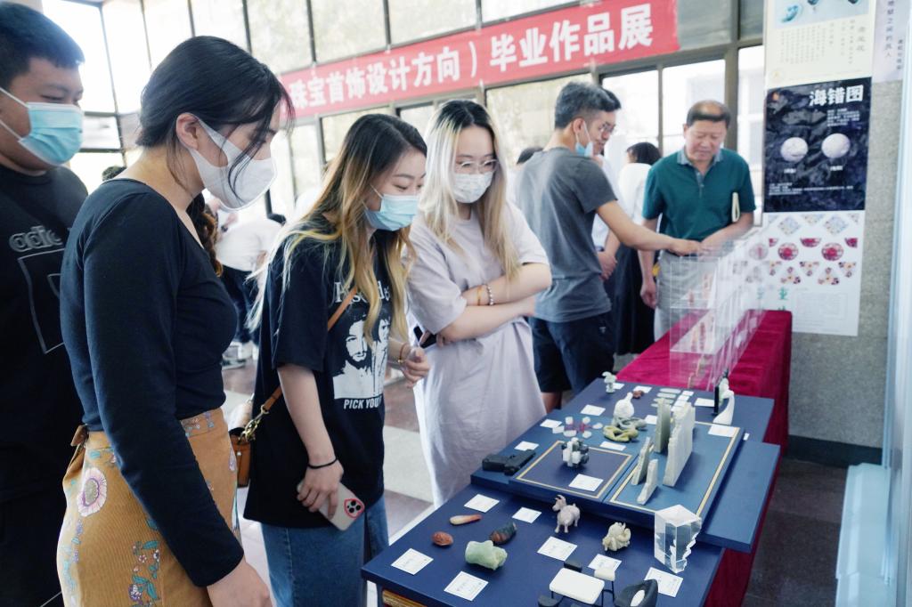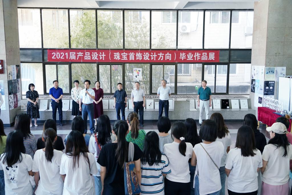 5月28日上午,BB贝博宝石与材料学院2021届产品设计(珠宝首饰设计方向)毕业作品展于校本部主楼一楼大厅举行开幕仪式。