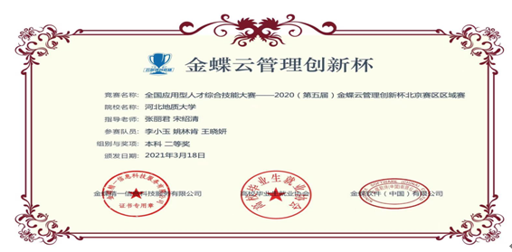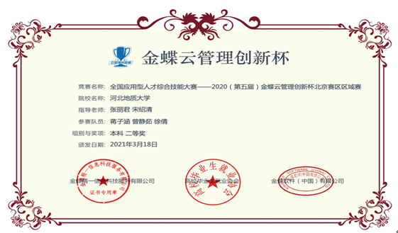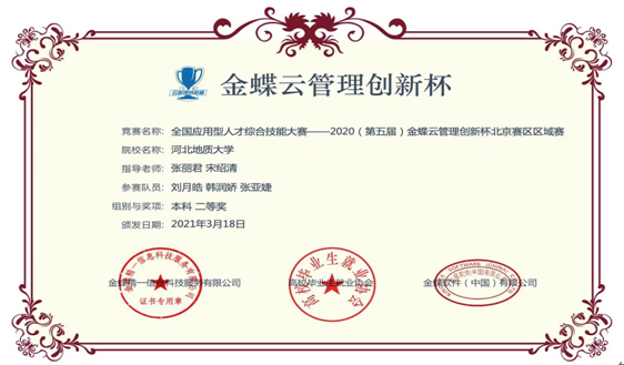 2020年第五届“金蝶云管理创新杯互联网+管理应用大赛”落下帷幕。本次大赛于2020年11月13日启动,历时四个月。大赛由高校毕业生就业协会和金蝶软件(中国)有限公司指导,金蝶精一信息科技服务有限公司主办,全国开设经管类专业的相关院校参加。