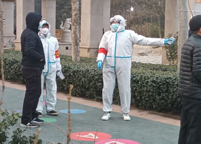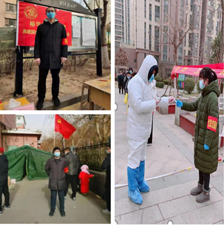 图:这是信息工程学院党员教师刘翠娟、赵战民参加志愿服务。刘翠娟在志愿服务中一个人承担一个单元居民的核酸检测信息核查和秩序疏导工作,在社区组织的6次检测工作中,所负责的68户206个居民没有一人漏检。她还积极给楼道早晚消毒,发布防疫政策,分享防治知识,用日常点滴服务群众;赵战民协助小区物业对出入小区人员进行检查登记,帮助困难老人解决生活困难,他们发挥了党员的先锋作用,诠释了志愿者的奉献互助精神。