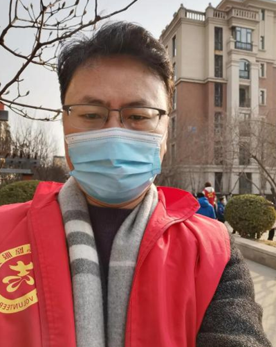 图:这是居住在曾被定为中风险区的天海誉天下B区管理学院杨建朝老师参与志愿服务。作为志愿者他协助居民采集生活物资团购信息,亲自外出采购粮油蔬菜,帮助社区制定核酸检测现场管理计划,设定服务工作岗位和制作现场动线图,协助维持核酸检测现场秩序。