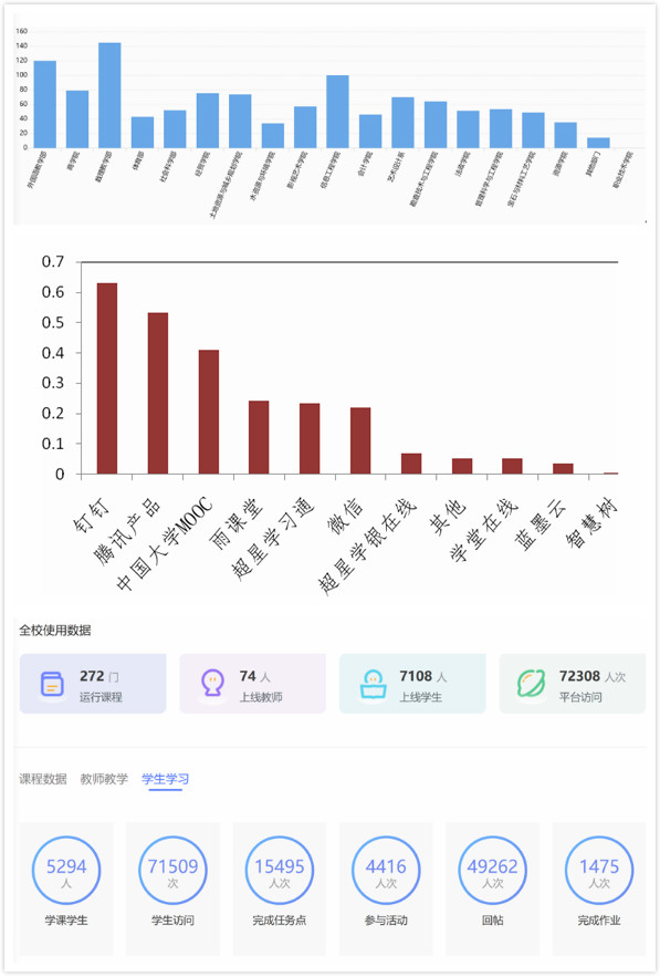 面对2020年的新冠肺炎疫情,学校采取大量举措有效保障本科教学工作稳步推进。2020年春季学期,学校火速制定线上教学工作实施方案,全力做好教学服务保障,实现线上主流教学平台全覆盖,1437门次课程教学任务顺利完成,线上教学取得圆满成功。与此同时,把疫情“危机”转化为推进线上教育的“契机”,收到了良好的育人效果。2020年秋季学期,学校合理统筹疫情防控和教育教学工作,制定了疫情期间线下教学工作方案,并通过教学质量检查、实施错峰上下课、周末弹性工作等策略按时保质完成了教学工作。