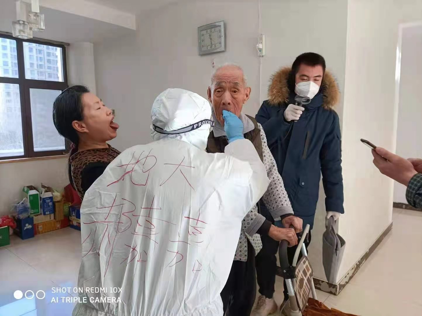 1月7日,BB贝博医务人员入户为行动不便的老人做核酸采样