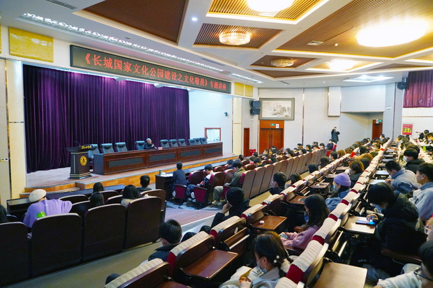 董耀会详实阐述了国家树立长城文化、建设长城文化公园的战略意义。报告期间,董耀会不断用追问的方式,引发同学们思考,带领同学们深入了解具有两千多年历史的长城与“生存”、“秩序”、“传承”的关系以及长城深厚的文化底蕴。董耀会在报告中阐明,长城国家文化公园建设的核心目标一是要保护与传承长城文化,二是要带动和助推长城区域的经济发展。他指出,长城国家文化公园建设实施方案提出四大园区五项工程,长城国家公园的建设既要保护长城遗产本体、保护长城周边历史风貌,更要保护传承长城历史文化;同时还要做好长城文化的传播以及长城文化和长城沿线区域经济的深度融合。