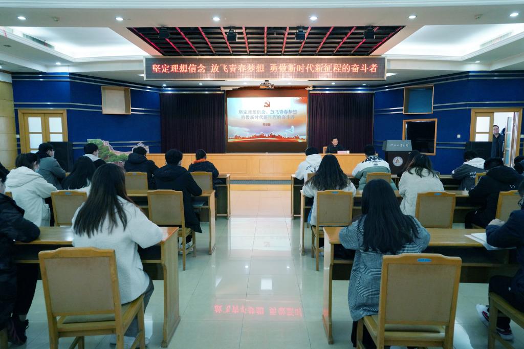 根据校党委统一部署,12月3日下午,党委书记邢承国以《坚定理想信念 放飞青春梦想 勇做新时代新征程的奋斗者》为题,为学生党员及入党积极分子讲授思政课,作党的十九届五中全会精神宣讲报告。