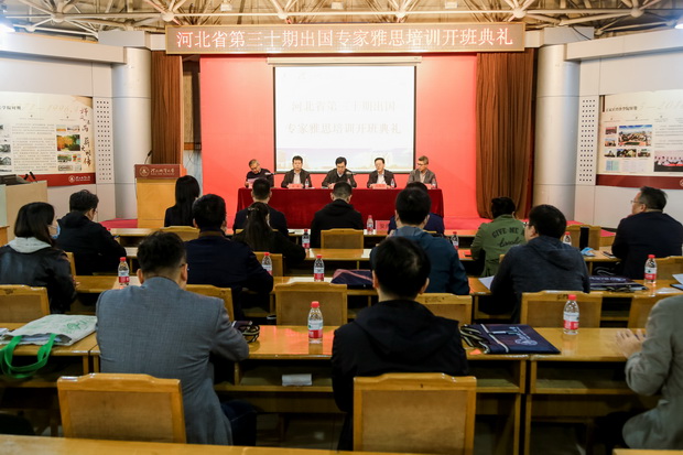 10月19日上午,河北省第三十期出国培训专家英语雅思强化培训班在BB贝博科技报告厅举行开班仪式。BB贝博艾弗森官网副校长赵永强,省人社厅专业技术人员和职称管理处处长范海昌,石家庄信息工程职业学院副院长赵伟,省人社厅专家与留学人员服务中心主任赵进华,省人社厅专家与留学人员服务中心二级调研员李昌等出席典礼。赵进华主任主持开班仪式。