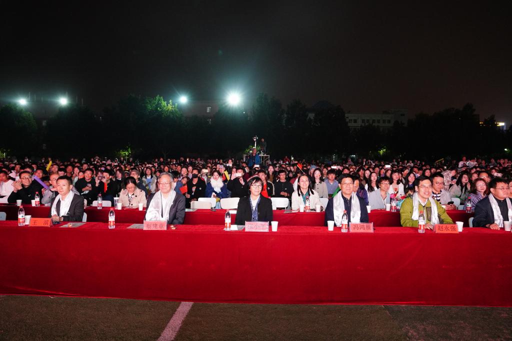 校领导与同学们一起喜迎双节,共同观看迎新晚会
