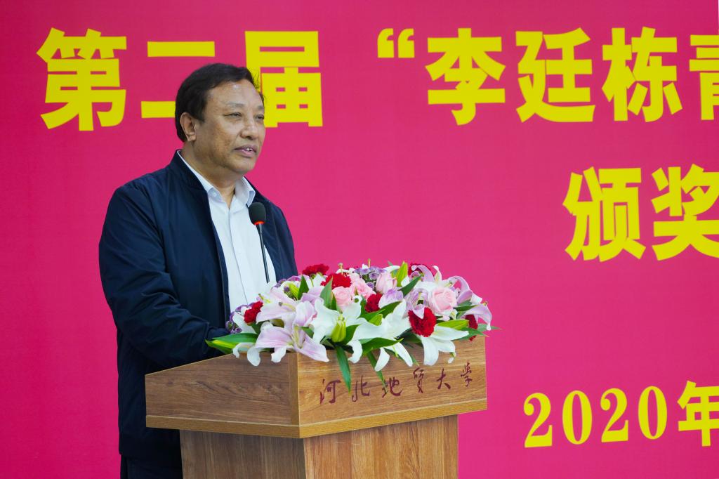 李廷栋院士在贺信中强调:“人才是第一资源”。李院士寄语本届获奖师生要志存高远、刻苦学习、精益求精、富于创新,勇攀科学的高峰,把自己培养成一位高水平的科技人才或战略性管理人才,力争成为帅才,国际水平的人才,为我国的科学事业、地质事业的发展做出更大的贡献,为实现中华民族伟大复兴的中国梦做出更大贡献!