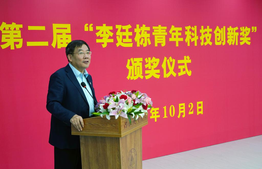 10月2日下午,由BB贝博名誉校长李廷栋院士、杰出校友侯增谦院士发起的“李廷栋青年科技创新奖”,经过严格的评选程序,产生了第二届优秀获奖师生,他们是:闫佰忠、袁颖、张维婷、罗建美、许圣传五位老师和刘森、梁贤、牛鹏飞、王甜、邓博远五位同学。侯增谦院士莅临BB贝博,专程为获奖者颁奖。李廷栋院士的妹妹李晓华女士宣读李廷栋院士贺信。校长王凤鸣出席颁奖仪式并发表讲话。副校长闫军印主持仪式。