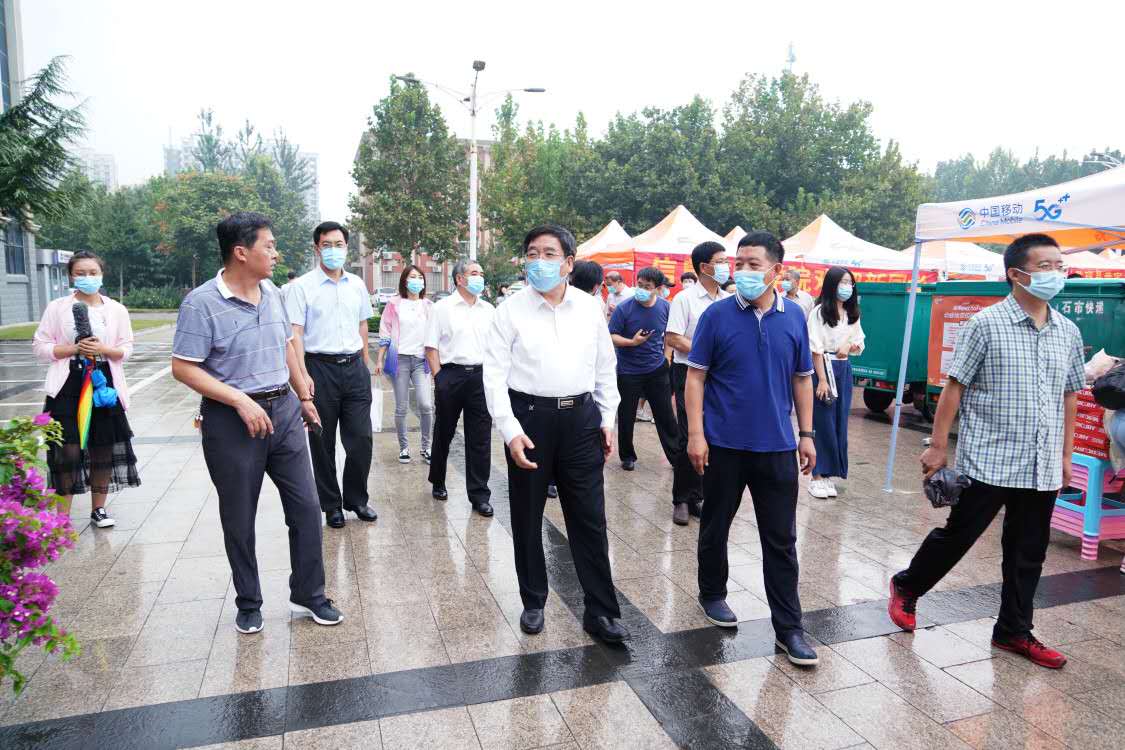 为更好地了解新生报到情况,14日上午,校长王凤鸣、副校长张小平、闫军印、冯鸿雁、赵永强在党办校办、党委宣传部、安全工作处、学生工作处、校团委、后勤集团等职能部门负责人的陪同下到北校区迎新现场检查指导、亲切慰问参加迎新工作的全体师生和工作人员,迎接来自全国各地的新同学。