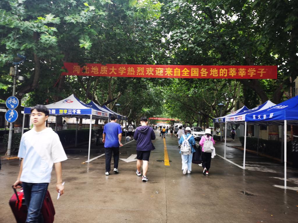 校园环境布置一新,教学楼下两只河北地大吉祥物的立体装置、绚丽的花坛、内容各样的迎新条幅营造出浓厚的喜庆氛围。100余名大学生志愿者热情地迎接新生,帮助新生运送行李,协助办理登记报道手续。学校在两个校区配备了数辆电车服务新生,快捷地往返于公寓和校门间,大大减轻了新生的行李运输负担,并专门为新生设置了核酸检测中心,为小萌新们提供双重保障。