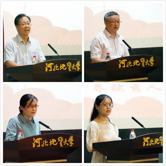 荣休教师代表段生贵、从教30年教师代表王礼胜、获奖教师代表李英杰、新入职教师代表尹泽分别发言