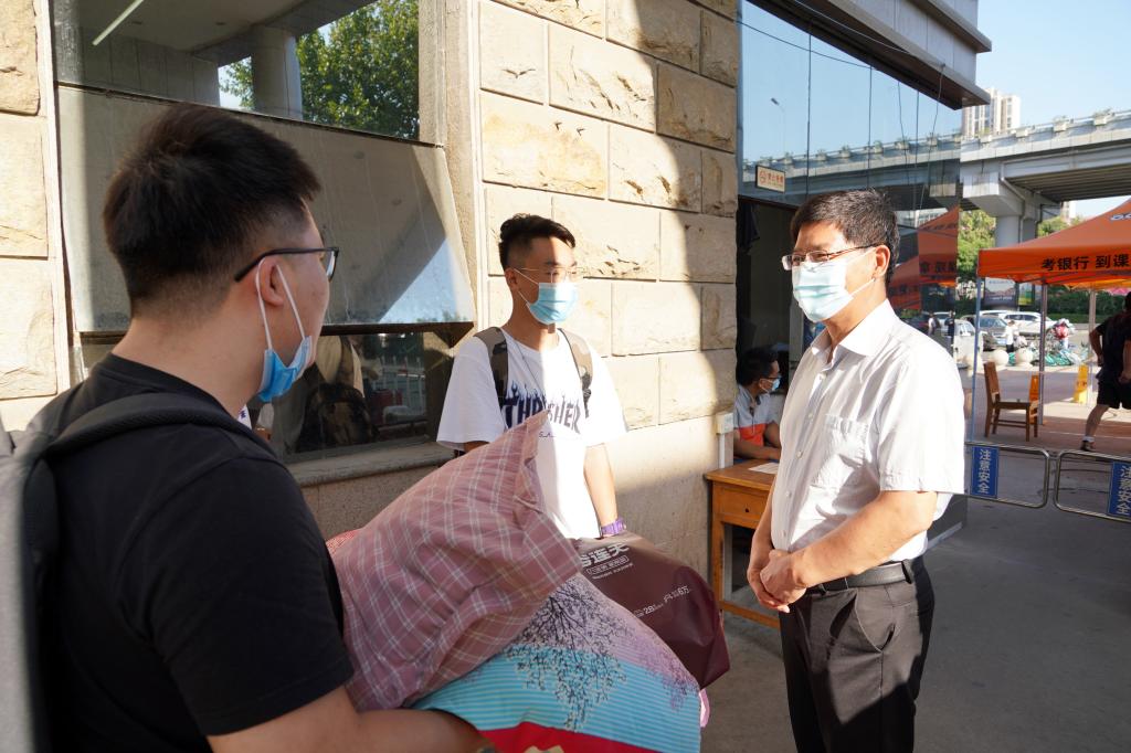 在校本部,返校学生按照“保持距离排队验证、出示身份证、学生证、核酸检测证明、健康码,依次接受体温检测和人脸识别”等入校流程有序进入校园。校领导们详细了解了学生分批返校工作情况,强调在认真落实疫情防控工作的同时,要全力做好对学生和学生家长的人文关怀,要及时解决返校学生可能遇到的困难与问题。期间校领导在校门口与刚刚返校的学生亲切交谈,详细询问了学生返校路上的情况、居家学习情况和返校后的学习安排。一方面提醒同学们积极配合学校要求做好疫情防控工作,一方面勉励大家返校后认真学习,勤加锻炼,珍惜在校时光。