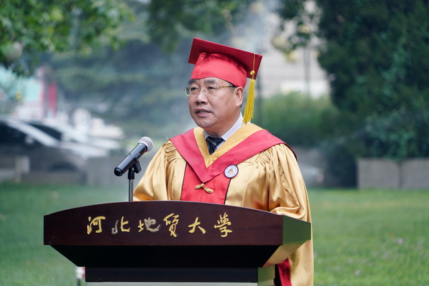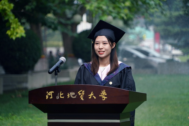 本科毕业生代表、外国语教学部杨曼琳同学回忆了四年来在学校生活的点点滴滴:“感恩母校‘仰山之高、慕水之善’的谆谆教诲,让我们成长为胸怀宽广、抱负远大的新时代大学生;感恩老师,鞠躬尽瘁、无私奉献,让莘莘学子遨游于知识的海洋;感恩即将离别的朋友,我们彼此分享欢乐,共渡难关。”她说,特殊时期的毕业季,因为有遗憾,所以更加让人珍惜。无论未来身在何处,都会传承地大精神,发扬地质人脚踏实地的作风,用奋斗谱写青春,将小我融入大我,在各自的领域发光发热,如校歌所唱,担当中华复兴之大任。