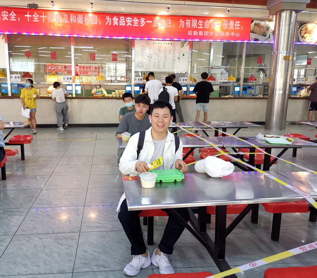 为进一步加强预防力度,学生进入餐厅前需要测量体温,并在餐厅门口洗手池对双手进行清洗。学校实施错峰就餐,一人一桌,同向就餐,排队打饭时前后间隔在一米以上。各学院领导、老师们纷纷走进宿舍看望学生,曾经空荡荡的图书馆也终于迎来了第一位还书的学生。