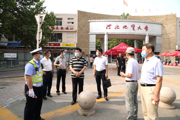 校领导王凤鸣、蔡建章、冯鸿雁、王滨到校门口迎接返校学生并视察情况