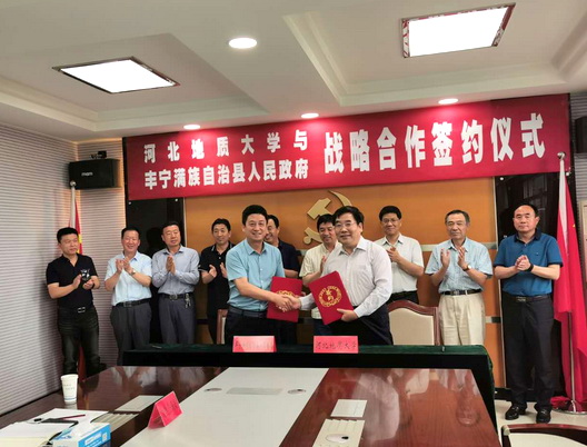 为深入贯彻落实《国务院办公厅关于深化产教融合的若干意见》和《河北省人民政府办公厅关于深化产教融合的实施意见》文件精神,加强政产学研用深度合作,6月17日,校长王凤鸣赴河北丰宁县,与丰宁县政府签署战略合作框架协议,就热河古生物化石群保护研究、国家地质公园建设、自然资源生态环境保护开发、区域经济规划与发展、文化旅游产业推广、新型智库建设、高层次人才培养培训等方面开展多领域、多形式的深度合作,打造长期稳定、可持续发展的战略合作伙伴关系。