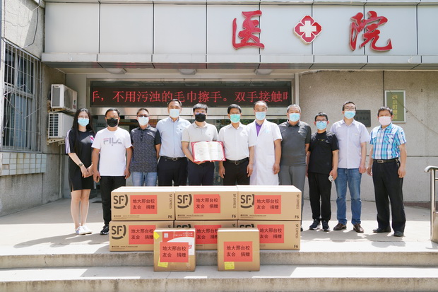 饮水思源,情系母校。6月5日,河北校友会邢台分会胡振波秘书长带领三名邢台分会的校友代表从邢台驱车赶来母校,代表邢台校友为母校捐赠医用口罩10000个,免洗酒精凝胶200瓶,助力母校的疫情防控和开学复课工作。
