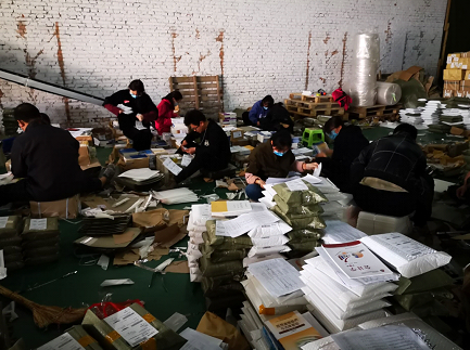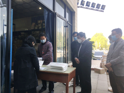 教务处教材科组织教材供应商会同快递企业加班加点对遍布全国各地(包括新疆、西藏等偏远山区)的6000多名学生所需的教材进行统计、分拣、打包、贴单邮寄,充分保障了541种、共计32000多册教材邮寄到学生手中,为线上教学保驾护航。王凤鸣校长、赵永强副校长和教务处李文斌处长亲临工作现场,指导和慰问本次教材邮寄工作。