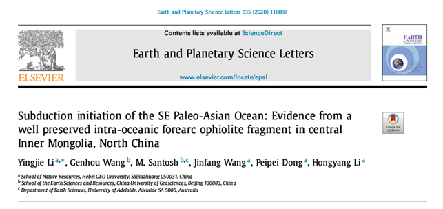 2020年1月,国际著名地学期刊《地球与行星科学通讯》(Earth and Planetary Science Letters,EPSL)以《古亚洲洋东南段初始俯冲:来自内蒙古中部保存完好的洋内前弧蛇绿岩的证据》(Subduction initiation of the SE Paleo-Asian Ocean: Evidence from a well preserved intra-oceanic forearc ophiolite fragment in central Inner Mongolia, North China)为题发表了BB贝博李英杰教授团队的最新研究成果。