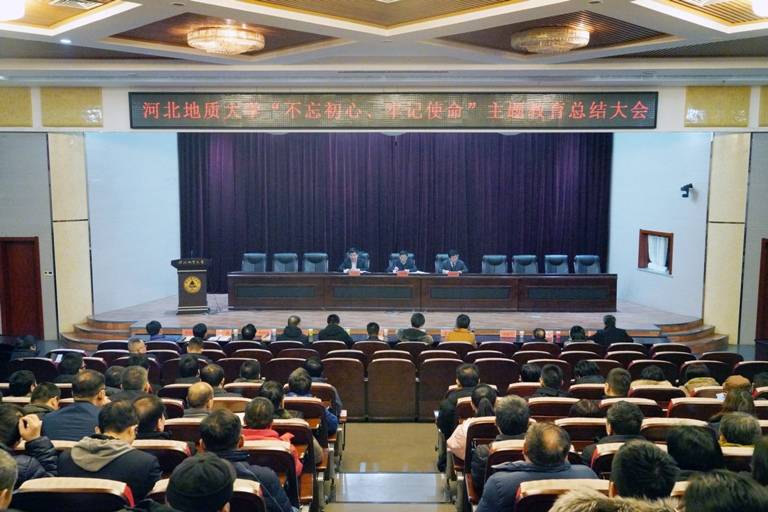 邢承国传达了习近平总书记在“不忘初心、牢记使命”主题教育总结大会上的重要讲话精神,以及省委书记王东峰、中央第八巡回督导组组长杨雄、省长许勤在河北省“不忘初心、牢记使命”主题教育总结大会上的讲话精神,并代表学校党委作主题教育总结报告。他指出,主题教育开展以来,学校党委在省委第八巡回指导组的督促指导下,紧密聚焦主题主线,围绕总体要求,坚持抓好学习教育、调查研究、检视问题、整改落实等各项工作,精准实施了“四三三四”工作法,一体推进四项重点举措。主题教育的扎实开展、深入推进,达到了预期目的,取得了实实在在的成效:一是在学习贯彻党的创新理论上取得新成效;二是在坚决做到“两个维护”上实现新提升;三是在推动学校高质量发展上迈出新步伐;四是在解决师生操心事、烦心事、揪心事上取得新进展;五是在营造风清气正的政治生态上展现新气象;六是在建立健全常态长效机制上实现新突破。