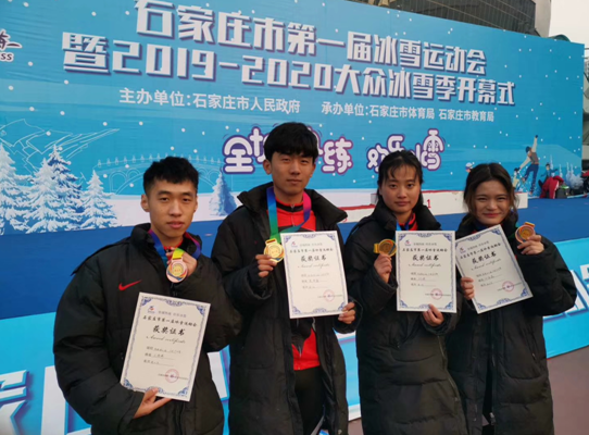12月22日,由石家庄市人民政府主办,石家庄市教育局、石家庄市体育局联合承办的石家庄市第一届冰雪运动会在石家庄市裕彤体育场成功举办。来自石家庄市各大高校以及社会人士和青少年参赛选手云集于此进行激烈角逐。由BB贝博体育部负责冰雪项目的宋海圣老师带队指导,在众多高校参赛选手中脱颖而出,最终在高校女子组500米速滑计时赛中,BB贝博选手刘琪、田海燕分别取得第一名和第三名的好成绩;在高校男子组500米速滑计时赛中,BB贝博扈雪康、王浩伟分获第一名和第三名的好成绩。学校荣获道德风尚奖。