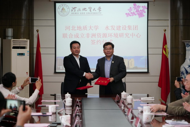 杨庆运董事长在致辞中介绍了水发建设集团发展历程和企业情况,他指出,成立非洲资源环境研究中心,是校企双方积极响应国家“一带一路”倡议,对接非洲政府和企业,推进资源环境类相关研究和生产项目落地,从而形成产学研相融合的新型校企合作模式的重要举措,企业一方将积极联系校方,努力推动非洲经济与中国经济的融合发展。