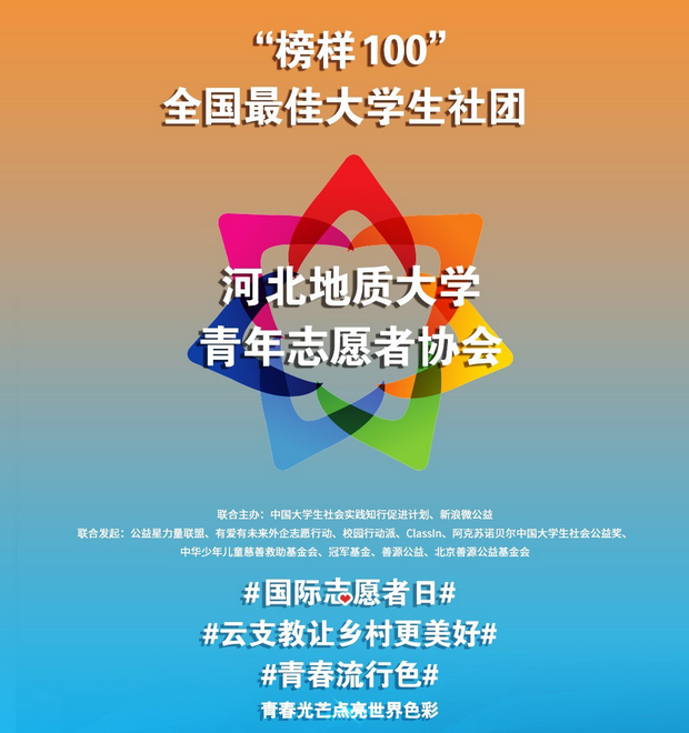 近日,BB贝博青年志愿者协会荣获“榜样100”全国最佳大学生社团称号,该活动是由中国大学生社会实践知行促进计划、新浪微公益联合主办。“中国大学生社会实践知行促进计划”(简称“知行计划”)创立于2012年,是中国最有影响力的大学生项目平台,旨在支持全国大中专学生社会实践及能力发展,助力大学生成长发展。
