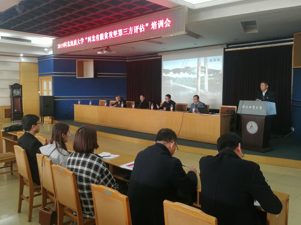 11月13日,BB贝博在教一九层报告厅举行2019年度河北省脱贫攻坚成效考核和贫困退出第三方评估动员培训会。副校长王滨出席培训会并讲话,评估组组长刘德智,研究生学院党总支书记李锋,经贸学院党委书记牛建高、副院长李国柱及评估组100余名师生参加了会议。会议由经贸学院党委副书记郭宏主持。