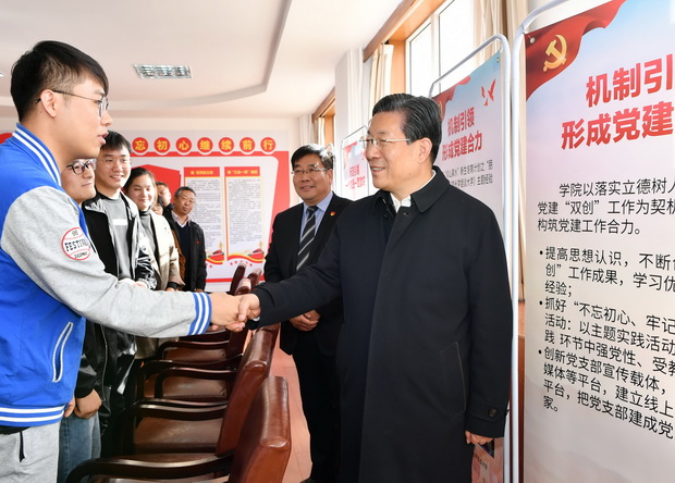 11月13日上午,省委书记、省人大常委会主任王东峰到BB贝博宣讲党的十九届四中全会精神。省领导焦彦龙、高志立、徐建培参加调研活动。BB贝博党委书记邢承国,党委副书记、校长王凤鸣陪同调研。