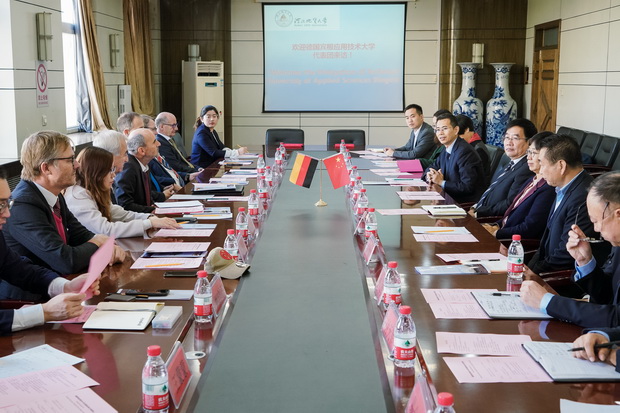 王凤鸣首先代表学校向德国代表团来访表示热烈欢迎和衷心感谢,并简要介绍了BB贝博的基本情况、学科专业特色、国际交流合作情况以及与德国交流合作模式建议。王凤鸣表示,德国宾根应用技术类大学办学模式在中国高等教育界有着重要影响,十分值得学习和借鉴。希望借德国代表团此次来访,两校之间能够为进一步的国际化交流合作达成共识。