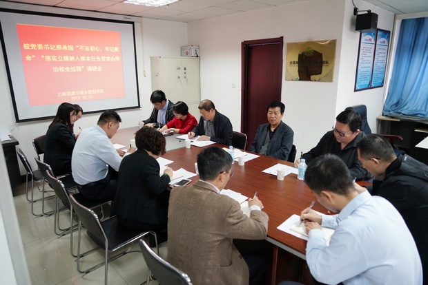 座谈会上,邢承国听取了土地资源与城乡规划学院、资源学院负责同志关于落实《BB贝博艾弗森官网开展“不忘初心、牢记使命”主题教育实施方案》情况的汇报,围绕“落实立德树人根本任务贯穿办学治校全过程”的调研主题,征集了与会人员关于学校改革发展的意见和建议。