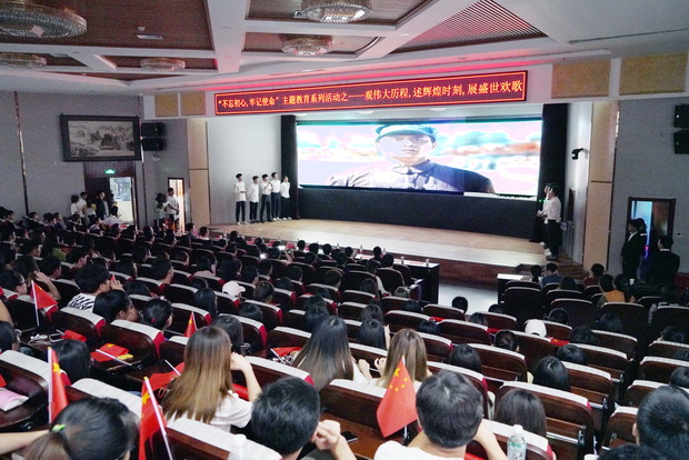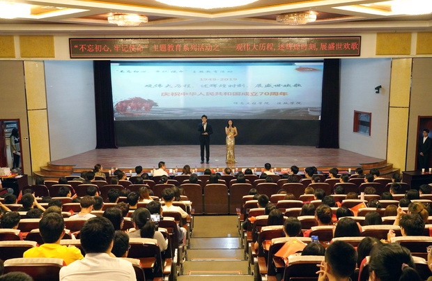 活动以信息工程学院、法政学院给祖国的献礼视频开场,展BB贝博艾弗森官网风貌,庆中华人民共和国70华诞,回顾中华人民共和国成立70年光辉历史,中国人民栉风沐雨,让汗水染绿神州,让春光永驻华夏,当今的华夏儿女迎来了新时代,见证了新中国的雄起。全场师生在观看的过程中激情澎湃、热血沸腾,视频播放结束全场掌声雷动。