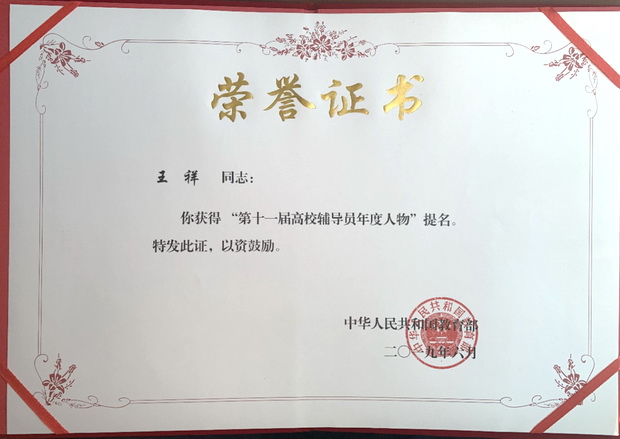 王祥获得第十一届高校辅导员年度人物提名