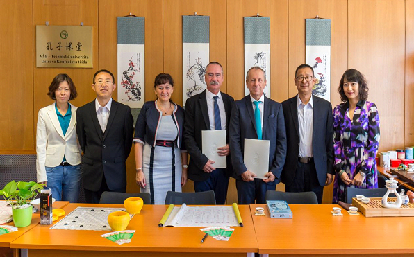 期间,奥斯特拉发技术大学校长瓦茨拉夫.斯纳舍尔教授代表奥斯特拉发技术大学孔子课堂,与当地最为古老的一所文理高级中学——奥斯特拉发马提驰尼文理中学校长拉迪斯拉夫.瓦塞维茨,在孔子课堂会议室共同签署了关于汉语教学的合作协议。BB贝博孔子课堂的中方负责人王建涛老师以及全体汉语教师参加了签字仪式。