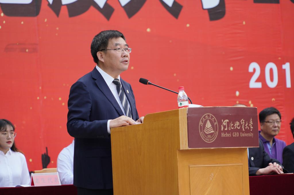 希望大家明“爱党爱国、爱校如家”之德。请从阅读中理解、从理解中感受、从感受中累积爱。请多读历史,了解党为人民谋幸福的艰难历程和祖国母亲的大爱;了解改革开放40多年来,党和国家在政治、经济、文化、生态、外交等方面取得的一系列令世人瞩目的成就。请多了解校史,了解这所已有66年办学历史,作为原地质部直属五所院校之一的学校的辉煌,作为自然资源部与河北省人民政府共建,也是河北省属重点骨干大学所取得的成就。