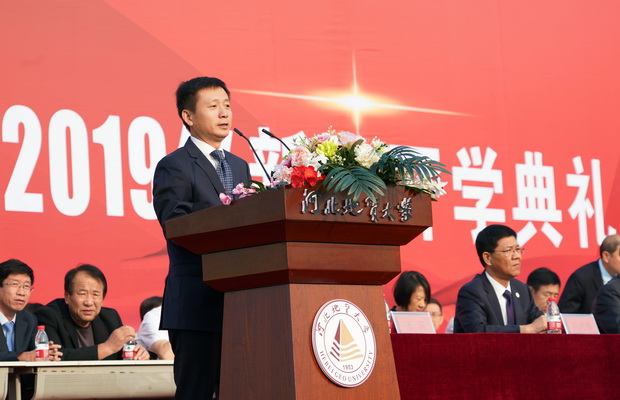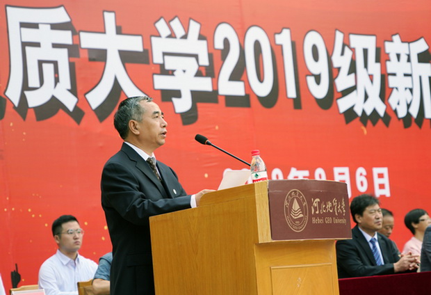 王凤鸣指出,建校66年来,河北地大人始终与国家发展同呼吸共命运,他们怀揣梦想,以登高望远、自强不息的精神和山水情怀薪火相传,在科研创新和人才支撑中为国家改革发展做出了巨大的贡献。此刻,2019级新生们将从这里开始自己的大学本科或研究生之旅,作为大学生活的第一课,王凤鸣表达了对同学们的殷切希望:一是希望同学们明“爱党爱国、爱校如家”之德;二是希望同学们向高处望,胸怀远大抱负,做时代的参与者和引领者;三是希望同学们脚踏实地,行稳致远;四是希望同学们向宽处行,达观自信,包容大气。对新入学的研究生们,王凤鸣校长也特别提出了希望,希望同学们能静心专注,独立思考,持之以恒。要耐得住寂寞、抵得住诱惑、守得住本心,克服功利之心、浮躁之气,臻于心无旁骛、静谧自怡的治学境界;要勇于突破传统思维定势,善于汲取多元的学科知识,在多学科交叉融合中锤炼开放包容的创新思维;要在社会实践交互中提升开拓创新能力,善于把学到的知识用于实践中,做到知行合一、以知促行、以行求知。