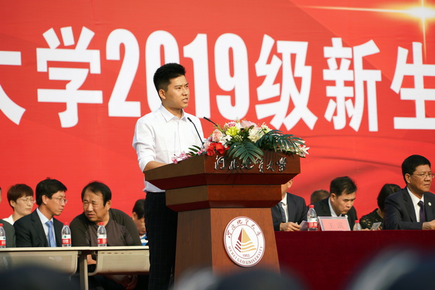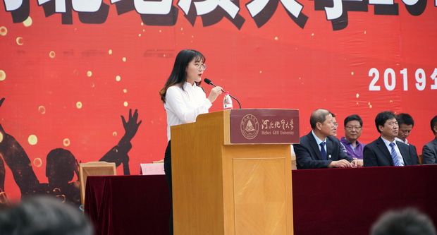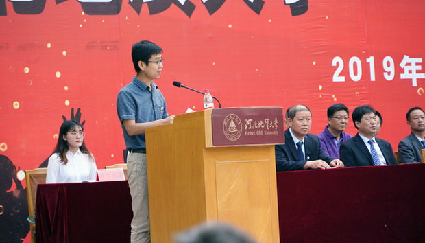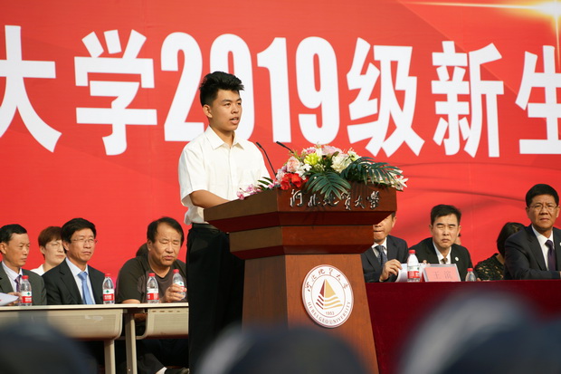 新生代表、勘查技术与工程学院张浩泽同学在北校区开学典礼的发言中提到:“初识地大,是从地大师生温暖周到的迎新开始,他们热情、独立、自信、睿智;是从地大校训、校徽开始,河北地大广阔的山水情怀和深厚的文化底蕴,将成为我们大学四年坚守的箴言。”研究生学院孙丰博同学也代表新生在本部的开学典礼中发言,他说:“在河北地大从本科到即将开启的研究生生涯,春秋四载,在地大沐浴了知识的雨露和阳光,接下来在研究生三年里,更要努力将自己塑造成既有学术专业水平,又有实践操作能力的合格人才,用优异的成绩和研究实践成果回报母校。”