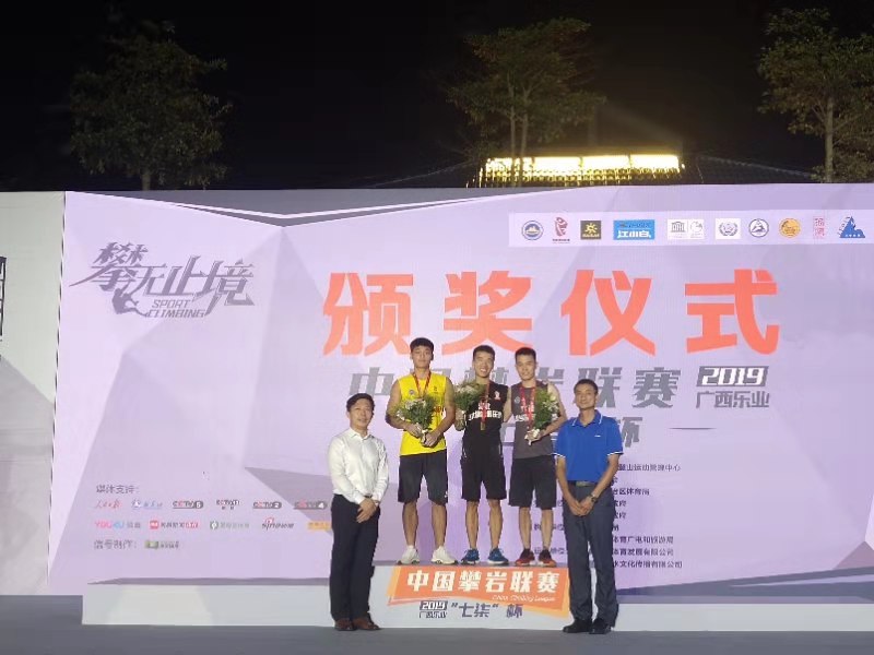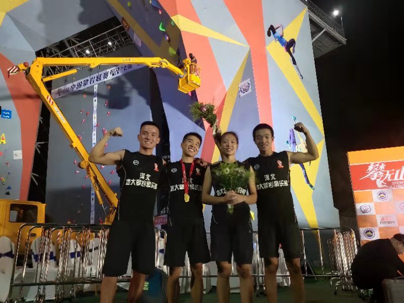 8月16日—19日,由中国登山协会主办的2019中国攀岩联赛(乐业站)在广西乐业举行,全国各地15支代表队71名队员参加了比赛。BB贝博攀岩队派出4名运动员参赛,三人进入决赛。在8月16日晚举行的速度赛决赛中,首次参加中攀联赛的资源学院李定来获得男子速度比赛金牌,会计学院王连琪获得季军。