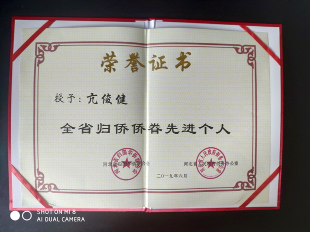 6月22日上午,在石家庄召开的河北省第十次归侨侨眷代表大会上,BB贝博信息工程学院院长亢俊健被授予“归侨侨眷先进个人”荣誉称号。