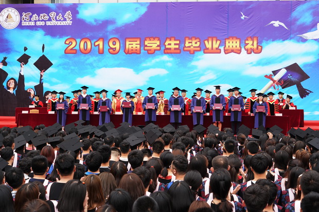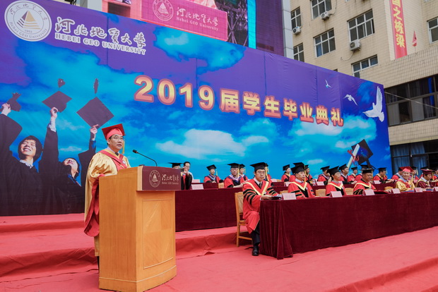 2019年6月20日,春去夏犹清,在这个充满生机的仲夏清晨,BB贝博2019届学生毕业典礼暨学位授予仪式在主楼广场隆重举行。BB贝博名誉校长、中科院李廷栋院士,校领导、校学位评定委员会全体委员在主席台就座,校友代表、各学院教师代表和2019届毕业生参加了典礼。典礼由副校长赵永强主持。