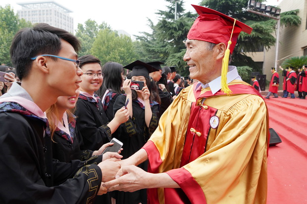 广场上红毯铺地,3649名本科生、10名MBA毕业生,以及来自埃塞俄比亚和巴基斯坦的2名MBA留学生即将踏上人生新的征程,他们与校领导、老师、校友和家长们欢聚一堂,共同见证这庄严而又光荣的时刻。上午七时三十分,在慷慨激昂的国歌声中,毕业典礼暨学位授予仪式正式开始。