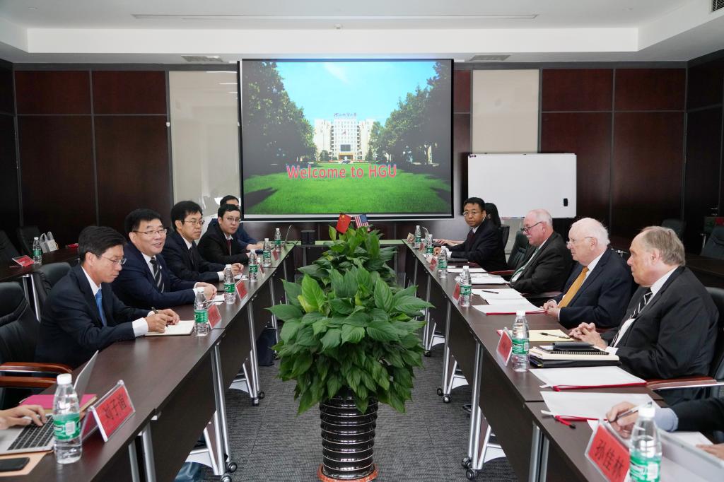 王凤鸣校长对艾奥瓦州代表团到访表示欢迎,并向来访代表团简要介绍了学校的概况、办学特色、学校近年来取得的成绩以及BB贝博新校区建设的有关情况,对BB贝博与美国德雷克大学前期商讨开展国际合作办学项目给予了肯定,希望两校能持续推进,加强该项目的合作。