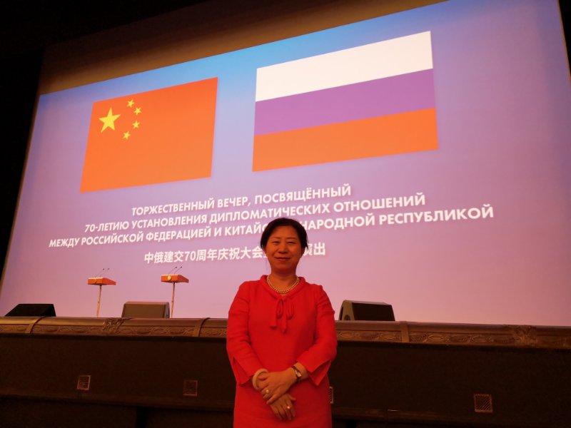 论坛结束之后,李秋梅出席了在举世闻名的莫斯科大剧院举行的中俄建交70周年纪念大会。