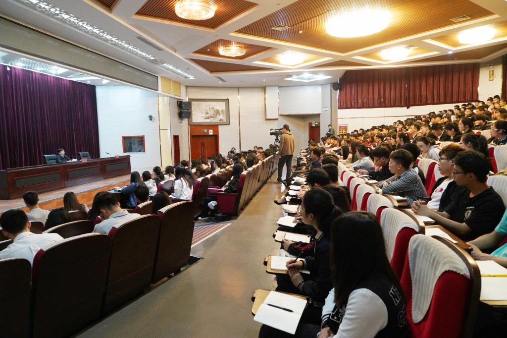 邢国辉结合习近平总书记在正定县任县委书记期间带领群众解放思想、大胆改革,招贤纳士、重视智力投资,大力发展经济的工作经历和谦逊朴实、尊老敬贤的感人故事,给BB贝博师生上了一堂生动的思政课。他还以石家庄在时代潮流下的发展建设为例,引用BB贝博校歌“达观博物,求是未央。诚意正心,济世经邦。知行合一循大道,中华复兴我担当”,勉励青年学子们既要学好科学文化知识,更要树立远大理想,形成正确的世界观、人生观、价值观;要把个人追求放在中国梦的伟大理想中,不断坚定“四个自信”,增强坚持党的领导的信念,永远高举中国特色社会主义伟大旗帜;作为新时代的大学生,要始终保持奋发有为的进取精神,始终保持敢为人先的创新精神,始终保持百折不挠的无畏精神;要淡泊名利、真诚待人、立足平凡,坚持用习近平新时代中国特色社会主义思想武装头脑,做到内化于心、外化于行、知行合一。